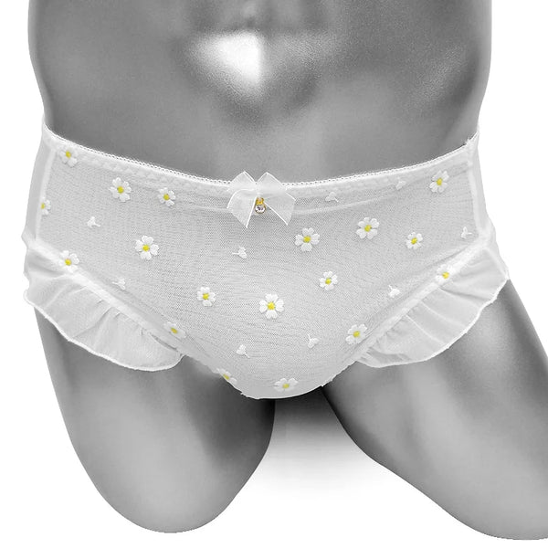 Introducing the Sissy Adhara See Through Mens Briefs—bold lingerie designed for those ready to embrace their sensual side. These daring briefs feature delicate lace detailing and an alluring floral print that peeks through sheer fabric, creating an undeniably provocative look. The frilly, low-rise cut flatters your silhouette while the see-through design delivers that thrilling confidence boost. Perfect for intimate moments or anyone brave enough to express their feminine aesthetic, these briefs combine playful Lolita-inspired styling with premium comfort. The soft lace trim and strategic sheer panels make a statement—this isn't your everyday underwear. Whether you're exploring your style or making a bold fashion choice, the Sissy Adhara briefs deliver the perfect blend of sexy sophistication and daring allure.